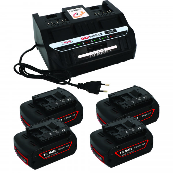 Pack 4 batteries compatible Bosch 18V 6Ah + 1 chargeur double