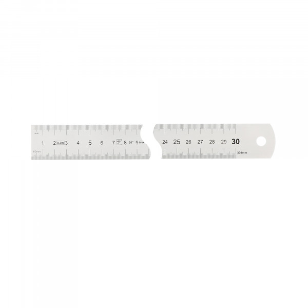 Règlet - Gamme professionnelle demi rigide - Matière : inox - Norme : classe II - Gradué haut et bas 1 face en 1/2 mm + mm - Brillant - Gravure Laser - longueur : 2000mm - Section : 30 x 1 mm