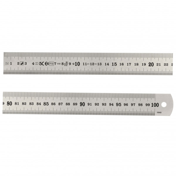 Semi-rigide chromé mat graduation mm et 1/2 mm Longueur : 499 mm Section : 30 x 1,0 mm Graduation : mm et 1/2 mm