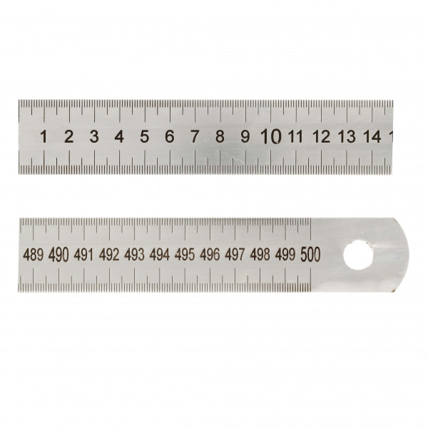 Règlet - Gamme professionnelle demi rigie - Matière : inox - Norme : classe II - Gradué haut et bas 1 face en 1/2 mm + mm - anti reflet - Gravure Laser - longueur : 300mm - Section : 30 x 1 mm