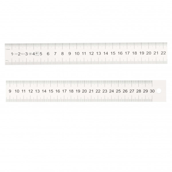 Semi-rigide chromé mat graduation mm et 1/2 mm Longueur : 1000 mm Section : 30 x 1,0 mm Graduation : 1/2 mm haut et bas