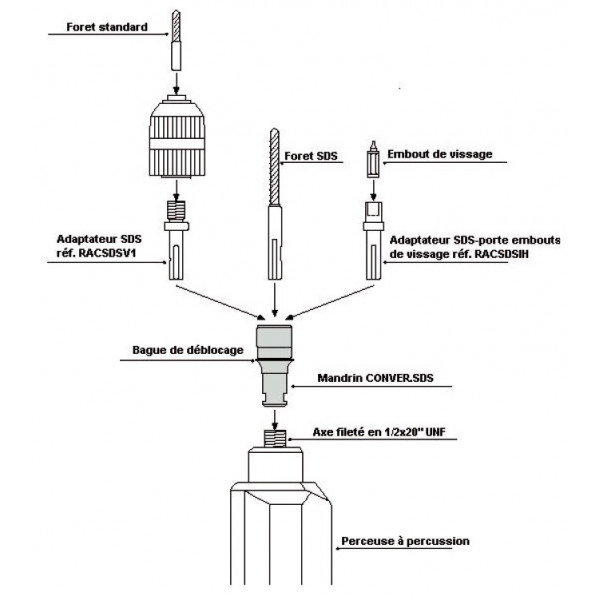 |Accessoire SDS pour perceuses à percussion : convertisseur de SDS Max en SDS plus||