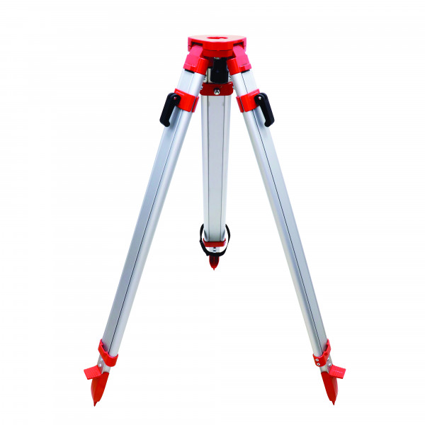 Trépied en aluminium. Compatible avec niveau et laser à filetage 5/8". Stabilité renforcée grâce aux trois pieds et à sa chaîne de maintient. Conception à deux sections. Une section avec des structures améliorées d'engrenage à vis pour régler la hauteur, l'autre section pouvant être étirée pour atteindre la hauteur maximale. La colonne élévatrice centrale est graduée en mm pour mesurer la hauteur. Longueur fermée : 129 cm, longueur ouverte : 340 cm, dont 156 cm pour la colonne centrale. Poids : 5,6 kg.