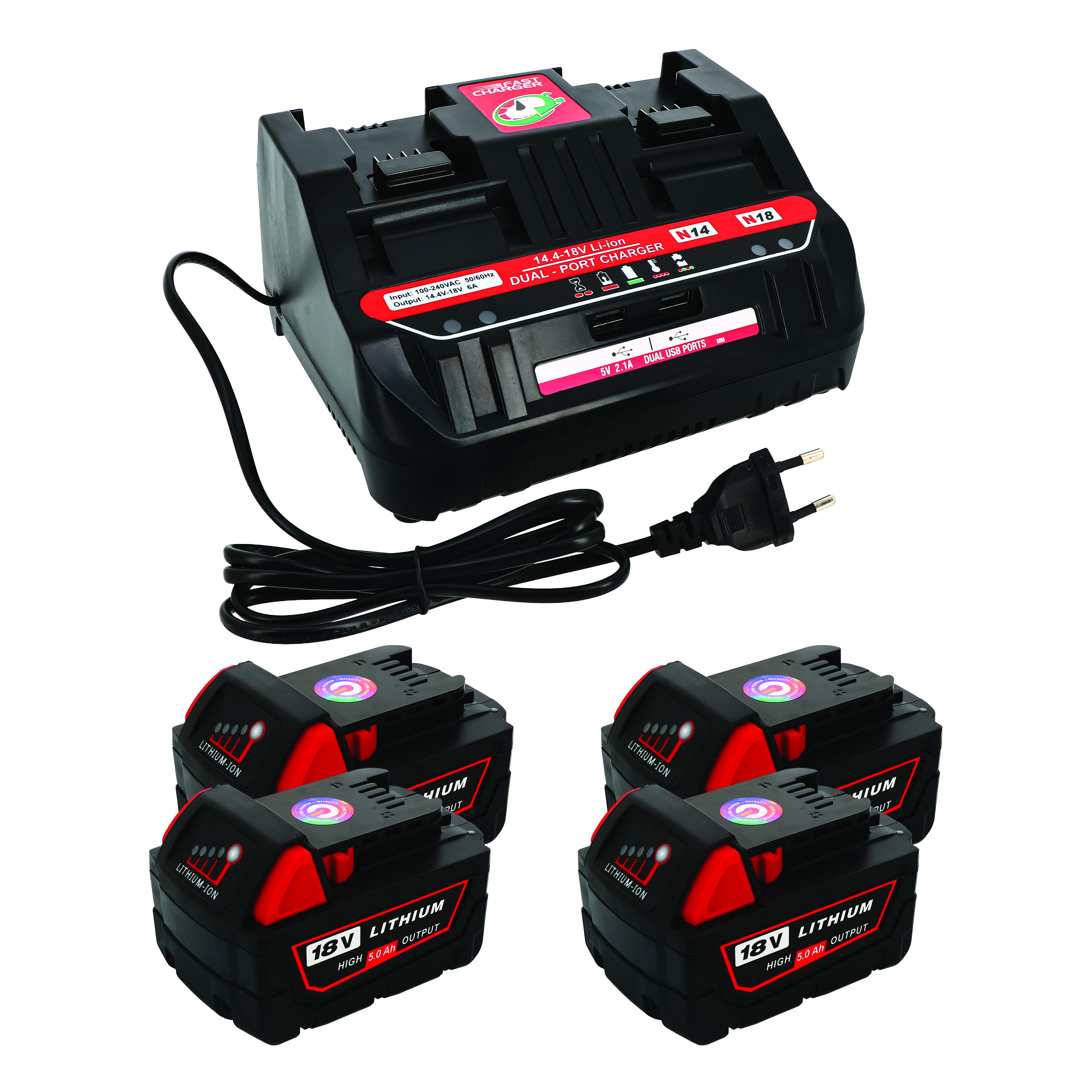 Pack 4 batteries compatible Milwaukee 18V 5Ah + 1 chargeur double