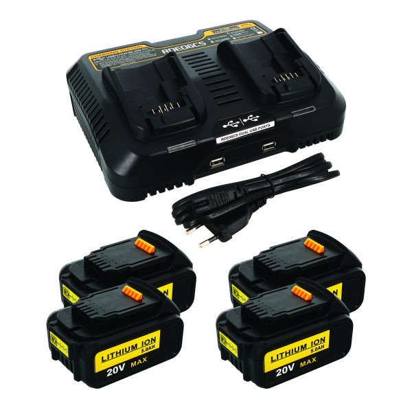 Pack 4 batteries compatible Dewalt 20V 5Ah + 1 chargeur double