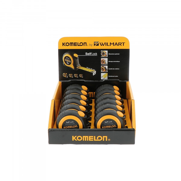 Blocage automatique du ruban. Mécanisme autobloquant "self lock". Ruban revêtu de nylon. Equerre 3 rivets et renfort inox. Clip ceinture. Dimensions : 5 m x 19 mm. Epaisseur ruban : 0,15 mm. Dimensions boîte : 69 mm x 73 mm. Poids : 280gr. Possibilité de commander le produit avec boîte présentoir (x12)