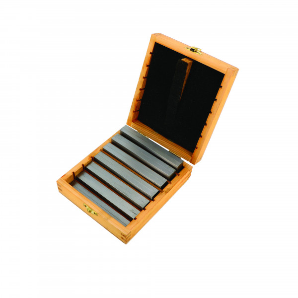 Cale de fraisage Acier trempé rectifié. Précision hauteur ± 0,01 mm. Parallèlisme 0,01 mm sur 100 mm. Longueur : 120 mm Epaisseur : 8 mm Hauteur mm : 10-15-20-25-30-35-40 Nombre de pièces : 2 x 7