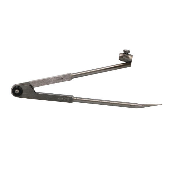 Compas à charnière 1/4 de cercle équipé d'un porte-crayon Ø crayon 8 mm maximum. Longueur : 220 mm Ouverture maxi : 220 mm
