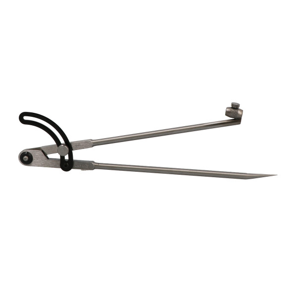 Compas PRO à charnière en acier au carbone traité anti-corrosion et laiton.Double charnière de précision- angles adoucis. Butée intégrée sur le secteur.Serrage Ergonomique.Pointes sèches de longueur 220mm, ouverture maxi 220mm.