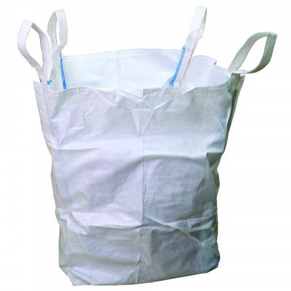 Conteneur souple non réutilisable . Anse 25 cm - PE. Modèle : fond plat Sac : 1m3 CMU : 1500 kg Dimensions : 95 x 95 x 110 cm