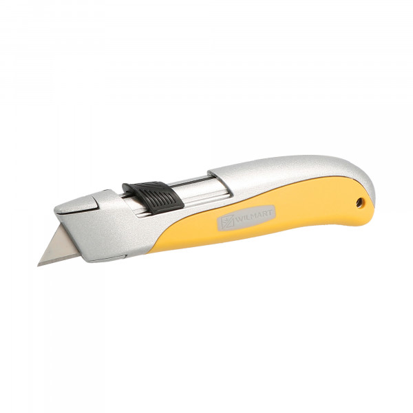 Corps alliage de zinc. Lame trapèze auto rétractable. Référence de lame trapèze recommandée : 481001. Lame en acier SK5. Longueur de lame 61mm. Hauteur de lame 19mm. Longueur totale du produit : 167mm. Poids : 140gr. Possibilité de conditionnement sous blister contre supplément. Pour un usage professionnel : éviter le contact avec l’eau ou les milieux humides afin de préserver la lame en acier SK5 et maintenir sa durabilité.