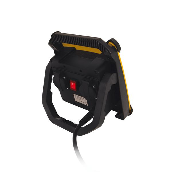 Projecteur de chantier LED filaire pensé pour l’éclairage des zones de travail en intérieur comme en extérieur, offrant puissance lumineuse et une protection IP65 adaptée aux environnements poussiéreux et humides. Données techniques : Source lumineuse : LEDs SMD longue durée Température de couleur : 6000 K Puissance : 20 W Flux lumineux : 1800 lm Angle d’éclairage : 120° Alimentation : filaire Longueur de câble : 3 m Type de câble : H05RN-F 3G 1.0 mm² Fiches : F Indice de protection : IP65 (poussière, projections d’eau) Boîtier : ABS Classe énergétique : E Dimensions : 172 × 52 × 192 mm Poids : 1,2 kg Compatible avec trépied réf. 810128 Conseil d’utilisation : Installer le projecteur sur un support stable ou sur notre trépied pour optimiser la diffusion du faisceau à 120°. Veiller à dé
