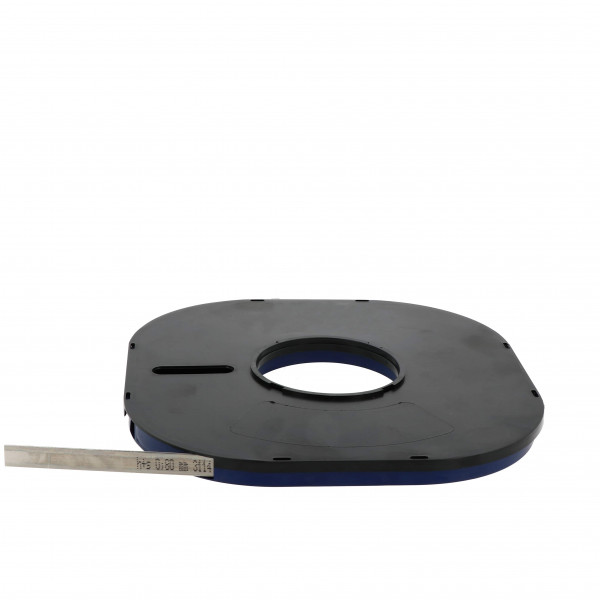 Clinquant acier Largeur : 12,7 mm Epaisseur : 0,8 mm Feuille d’'inox enroulée - longueur 5 m. Inox écroui extra dur. Dureté : 1 500 - 1 700 N/mm² Résistance : <1500 N/mm² jusque 0,02mm, <1700N/mm² jusque 1mm