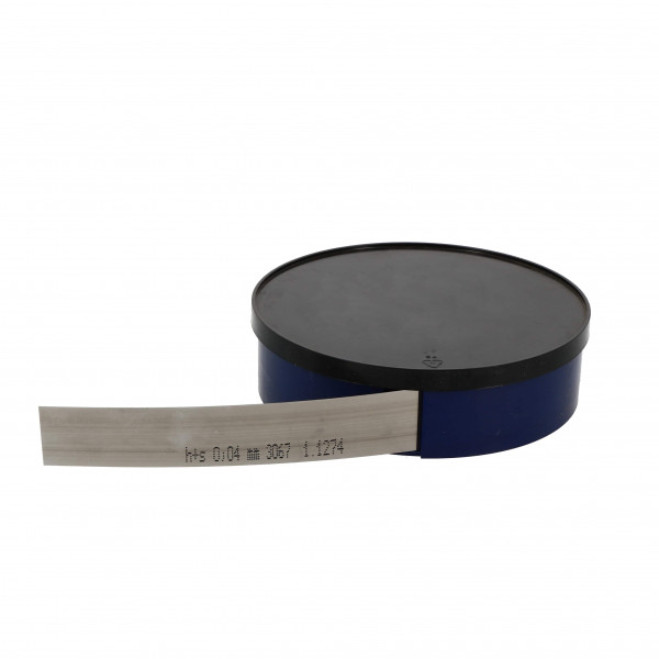 Clinquant acier Largeur : 12,7 mm Epaisseur : 0,02 mm Feuille d’'inox enroulée - longueur 5 m. Inox écroui extra dur. Dureté : 1 500 - 1 700 N/mm² Résistance : <1500 N/mm² jusque 0,02mm, <1700N/mm² jusque 1mm