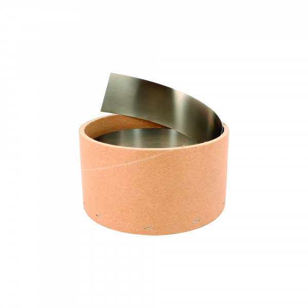 Clinquant acier Largeur : 12,7 mm Epaisseur : 0,35 mm Feuille d’'acier enroulée - longueur 5 m. Clinquants acier : Acier écroui de désignation normalisée DC01-C590. Acier au carbone trempé et revenu. Résistance minimum à la limite élastique RE>520N/mm2. Résistance à la rupture Rm 490N/mm2 - 740N/mm2.