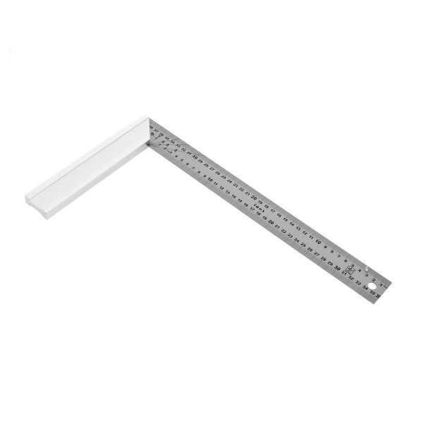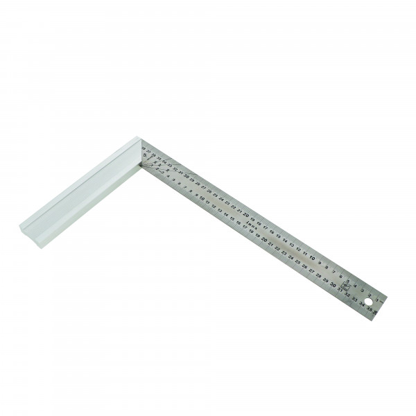 Bonne précision. Gravure profonde. Lame inox épaisseur 0,9 mm. Talon profil aluminium. Repère des angles 30°,45°,60° directement sur la lame. Graduation recto verso Longueur lame : 200 mm Longueur talon : 120 mm Poids : 170 g
