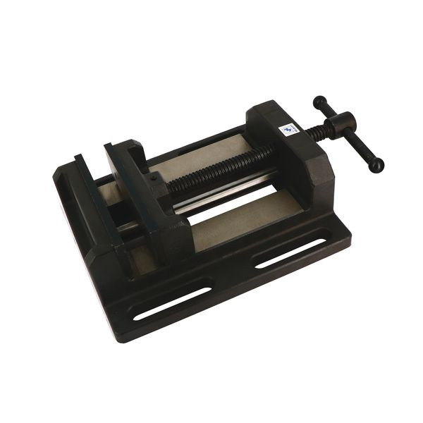 Etau de perçage en fonte. Série standard. Mâchoire en acier trempé. 1 face lisse, 1 face rainurée. Largeur mors : 80 mm Ouverture : 75 mm Poids : 3,8 kg A : 104 mm B : 50 mm C : 12 mm D : 150 mm