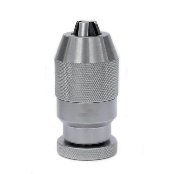 Mandrin auto-serrant pour machine outil de haute précision Classe : H+ Entièrement trempée et rectifiée. Concentricité 0,04 mm. Capacité de serrage : 3 à 16 mm Qualité des mors : Trempé rectifié Montage : DIN B16 La norme NF E 66-546 fixe les spécifications techniques (niveau de précision) des mandrins. La précision du mandrin est déterminée en mesurant le battement radial d?une broche d'essai. Quatre classes de mandrins sont prévues L, M, H et H+ de la moins précise à la plus précise, répondant à des utilisations différentes. Classe L : Occasionnelle Classe M : Professionnelle Classe H : Industrielle Classe H+ : Industrielle de précision