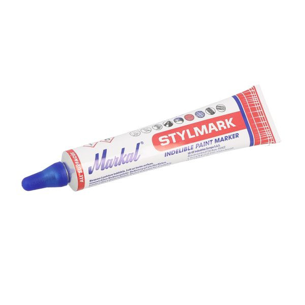 Pour marquage indélébile sur toutes surfaces : humides, rouillées, grasses. Pointe bille. Résiste à 200°C. Couleur : noir