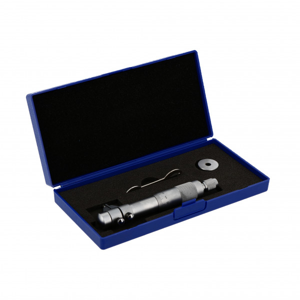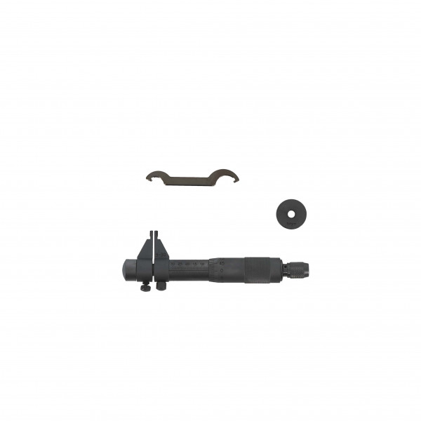 Face de mesure en carbure. Livré avec anneau de réglage et clé de serrage. Capacité : 25 - 50 mm Etalon : anneau 25 mm Précision : 3/100 Lecture : 1/100