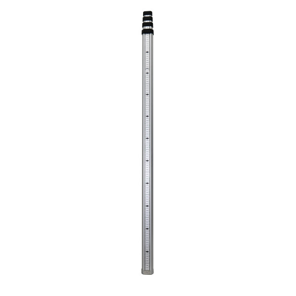 Eléments tubulaires en aluminium. Section rectangulaire. Fiole de niveau pour ajustement. 1 face graduée en mm. 1 face mire. Longueur : 5 m