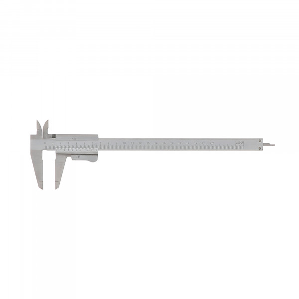PAC double bec en acier chromé mat. Vernier avec vis de blocage. Doté d'une jauge de profondeur. Capacité : 300 mm. Lecture : 1/50. Hauteur bec : 63/24 mm. Longueur total du produit : 414mm.