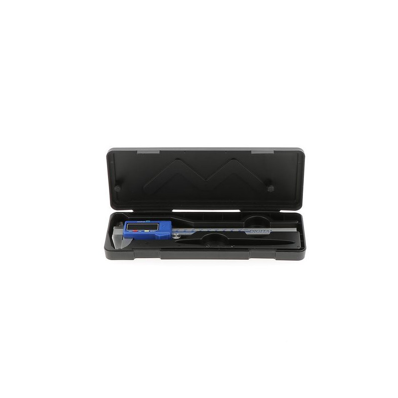 Pied à coulisse PRO en acier inoxydable, conçu pour des mesures précises. Muni d'un double bec : 1 bec pour mesures intérieures, 1 bec pour mesures extérieures. Possède 3 boutons : 1) Marche Arrêt (ON/OFF) 2) Changement d'unité (mm/inch) 3) Remise à zéro. Taille de l'écran : 40x16 mm. Lecture et affichage au 1/100. Jauge de profondeur. Vis de blocage sur le vernier. Sortie de données RS232. Règle, becs et jauge en Inox. 1 pile SR44 fournie. Capacité : 150 mm. Précision mesurée (bec extérieur et intérieur) : 3/100. Hauteur bec : 40/20 mm. Lecture : 1/100. Longueur totale du produit : 235mm. Matière : Acier inoxydable, 52 HRC. Certification COFRAC sur demande. Lecture rapide et claire grâce à l’affichage digital. Robustesse et stabilité grâce à la construction inox.