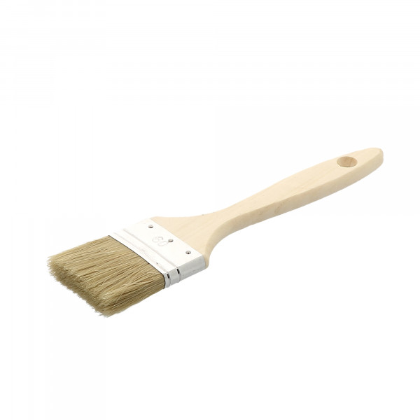 Pinceau queue de morue épaisse Composition de soies naturelles et synthétiques choisies Manche en bois naturel Virole laitonnée Largeur : 40 mm Epaisseur : 15 mm Sortie : 32 Conditionnement : 6 Poids : 64g
