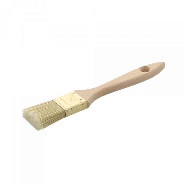 Pinceau queue de morue épaisse Composition de soies naturelles et synthétiques choisies Manche en bois naturel Virole laitonnée Largeur : 50 mm Epaisseur : 17 mm Sortie : 42 Conditionnement : 6 Poids : 83g