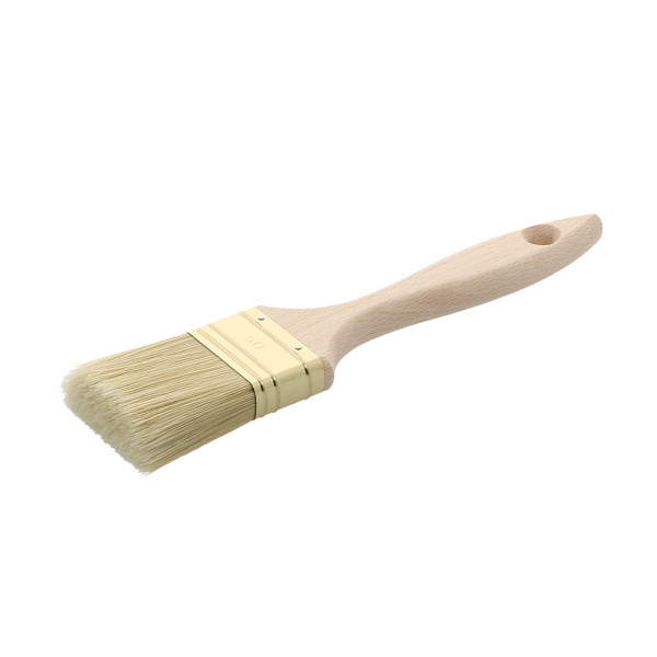 Pinceau queue de morue épaisse Composition de soies naturelles et synthétiques choisies Manche en bois naturel Virole laitonnée Largeur : 60 mm Epaisseur : 18 mm Sortie : 52 Conditionnement : 6 Poids : 114g