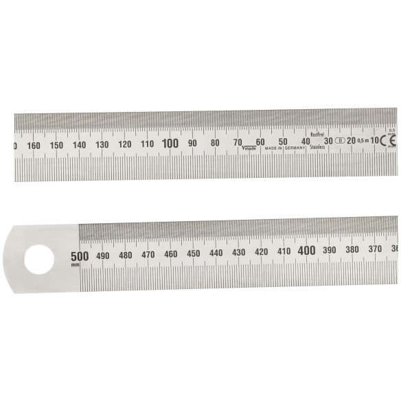 Jauge de charpentier en acier inoxydable gravé pour un traçage précis et durable. La règle graduée est lisible des deux côtés, avec une graduation en millimètres jusqu’à 150 mm, puis en centimètres. La gravure profonde et le traitement mat anti-reflet assurent une lecture optimale, même en extérieur. Longueur : 350 mm. Section : 1,2 x 30 mm.