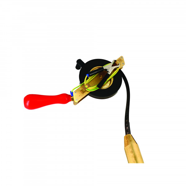 Etrier et manivelle en laiton. Le laiton évite les frictions et n'est pas conducteur. Poignée bois. Ruban acier noir avec réserve pour les graduations et chiffres. Attache rapide du lest au ruban. Lest 750g gradué en laiton. Mise à la terre pour l'écoulement de toutes charges d'électricité statique. Livré avec une valise de transport. Ruban classe II. Norme CEE Dimensions : 20 m x 13 mm